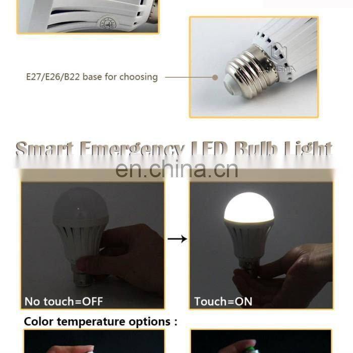 CE ROHS LED Smart Bulb 7W 9W 12W 15W Led Emergency Light Rechargeable Battery E27 Lamp for Home 2835 Smd Bomb