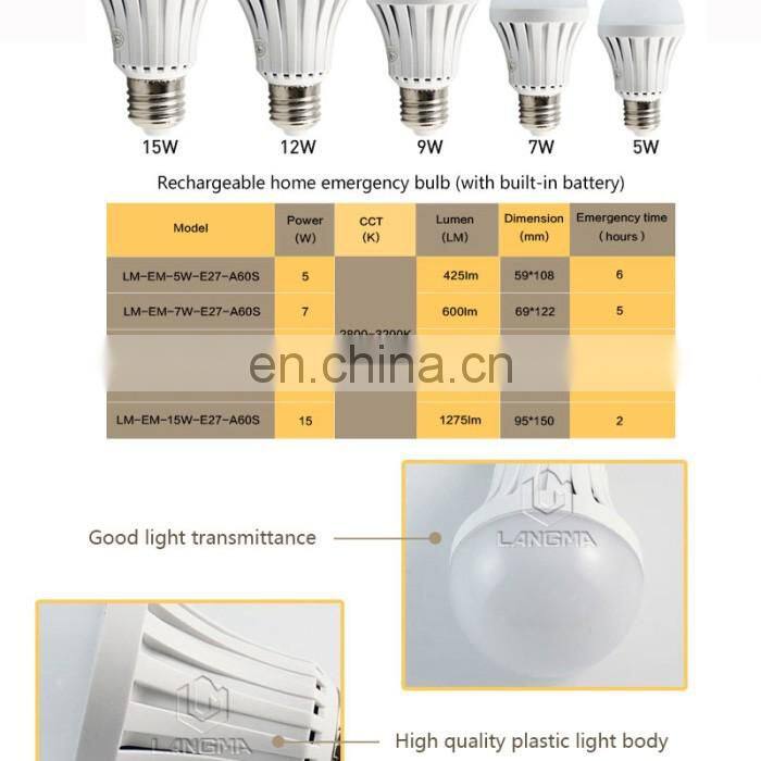 Warm white+cold white 7w e27 5-6hours emergency time led light emergency lamp