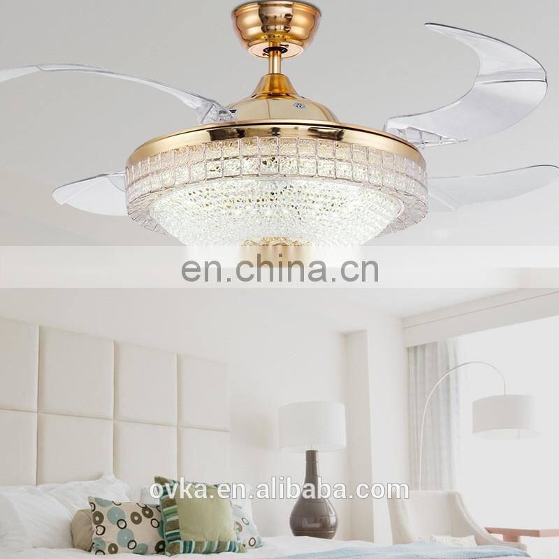 European Luxury Living Room Bedroom Crystal Lamp LED Brand Stealth Ceiling Fan Fan Lights Restaurant Lights