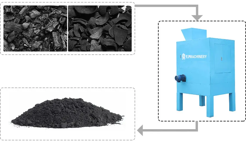 Based on the characteristics of charcoal, we specialized in this charcoal powder grinding machine. Our new type charcoal grinder is equipped with 2-3 sets of rollers in turn. This grinder can grind lump charcoal into fine charcoal, with size less than 5mm.