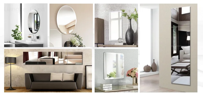 Custom Size 2mm3mm4mm Square Oval Round Decorative Bath Wall Frameless Mirrors