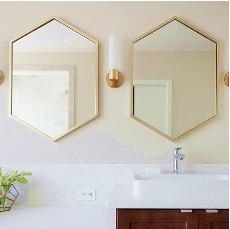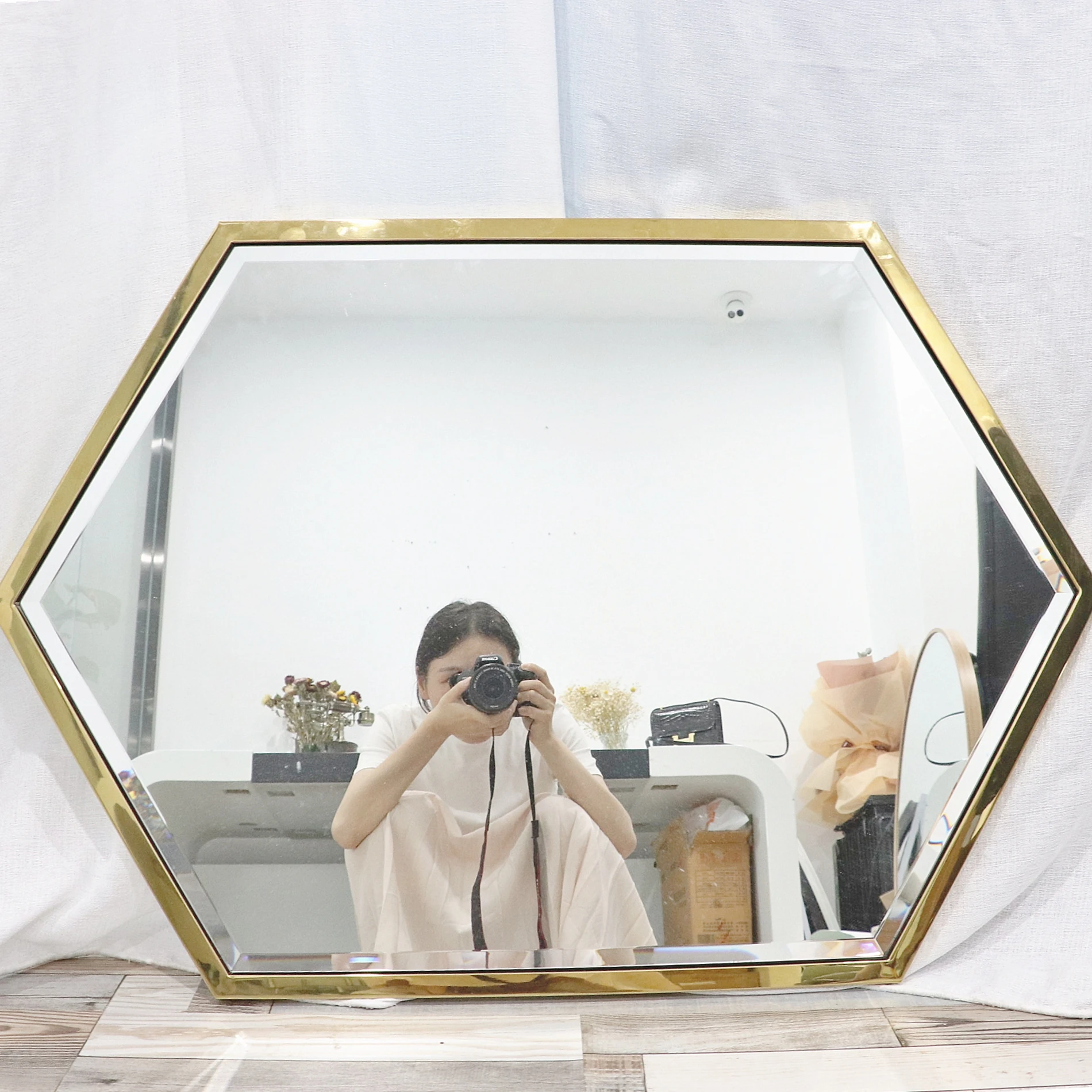 Modern Hexagon Polished Iron Frame Decorative Wall Mirrors Decor Wall