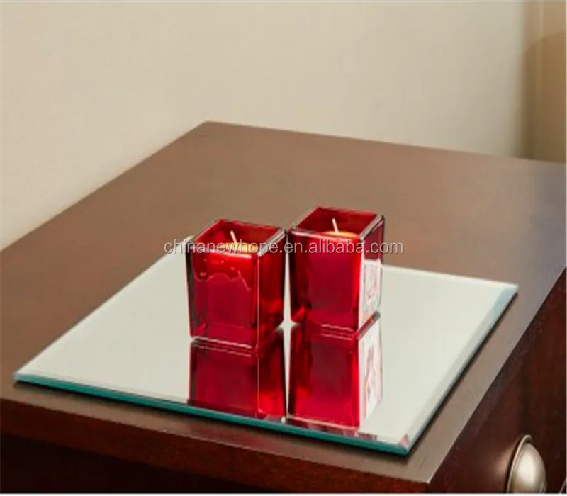 Square Shape Beveled Glass Mirror Candle Plate Glass
