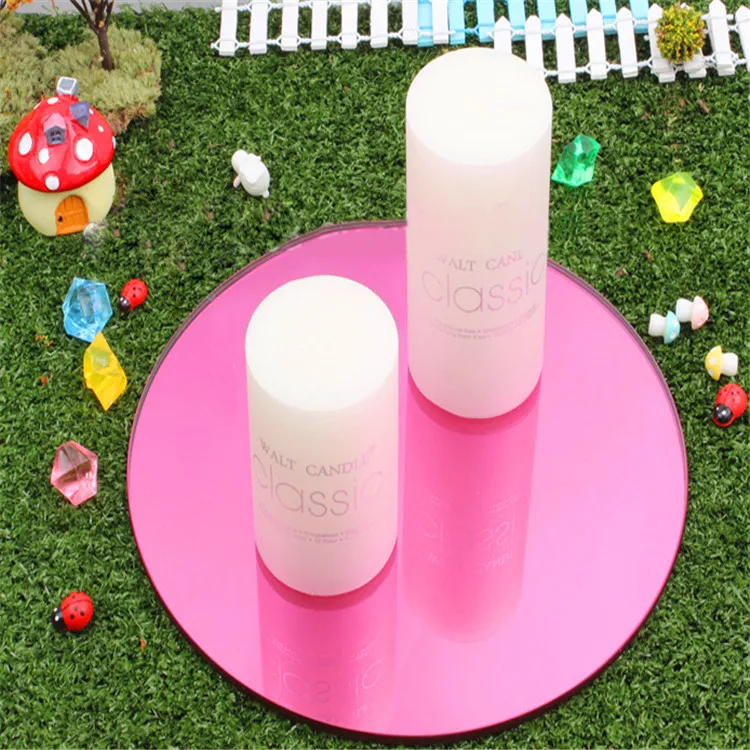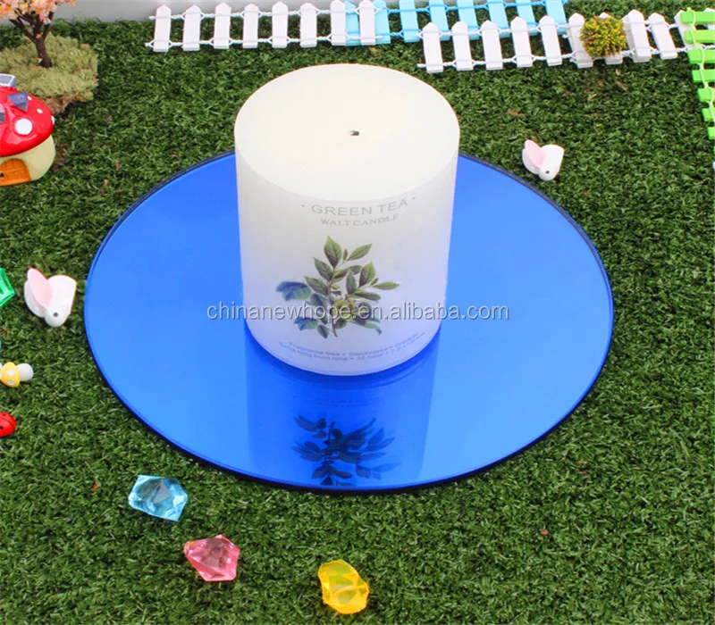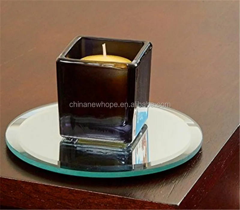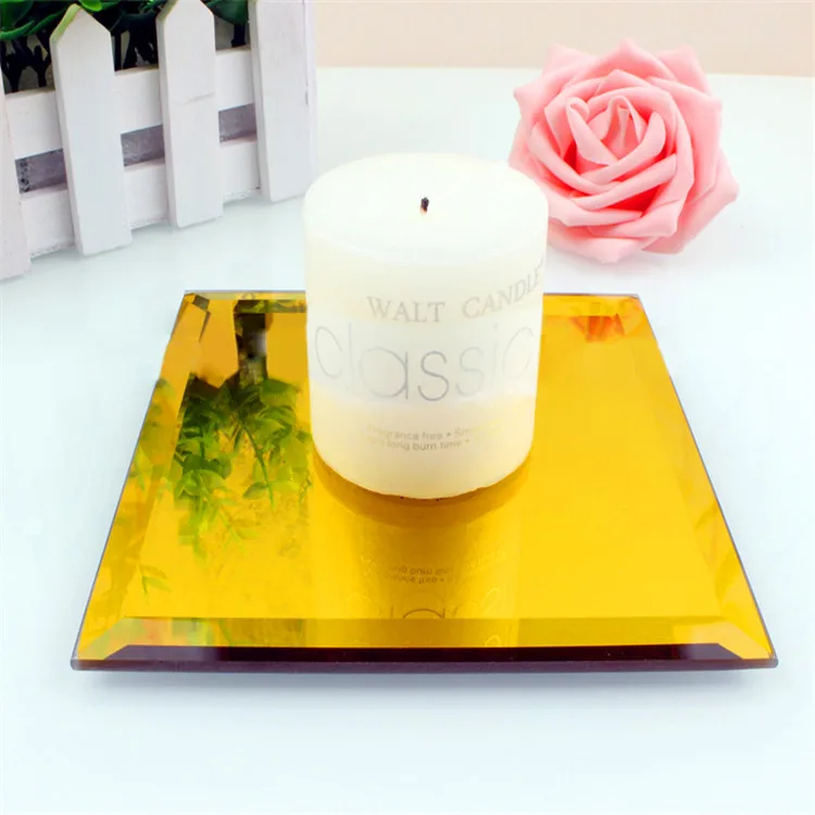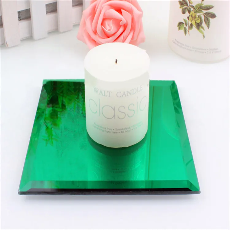 Square Shape Glass Mirror Candle Plate Round Bevelle Glass Candle Holder Colored Glass Plate