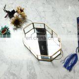 Nordic Style Storage Box Wedding Decoration Glass Mirror Serving Tray Wholesale Metal Frame Mirror Tray