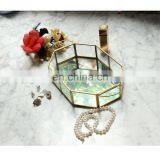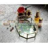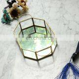 Factory Wholesale Multi-Purpose Nordic INS Geometrical Brass Strip Glass Jewelry Box Metal Mirror Tray Decorative