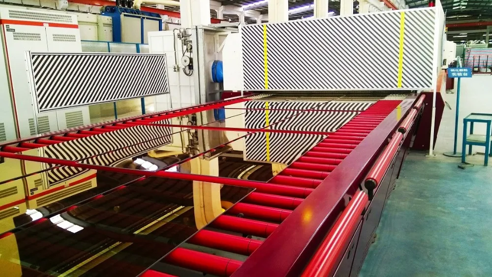 To acheived tempered strength. First of all, you need to cut the float glass to your final size, and then do the edgework for the glass. after that, put the glass into temper machine, with heating to around 700 degree and then cooling down rapidly by a wind jet. Thus causing the outer surface in compression whereas the inner side still in tension, which cause the toughtened glass strength 5 times more than normal float glass.
