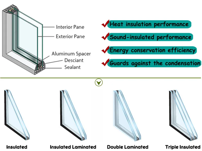 Insulated glass, also known as insulating glass, hollow glass, double/triple glazed glass, IGU, DGU etc. An insulating glass unit commonly consists of two (sometimes more) panes of glass separated by a spacer material and sealed together at the edge. The insulating airspace is filled with air or a noble gas, such as argon or krypton inside. Each glass pane has two surfaces, so typical double-paned IGUs have four surfaces.
