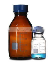 Reagent bottles, also known as media bottles or graduated bottles, are containers made of glass, plastic, borosilicate or related substances, and topped by special caps or stoppers and are intended to contain chemicals in liquid or powder form for laboratories and stored in cabinets or on shelves.