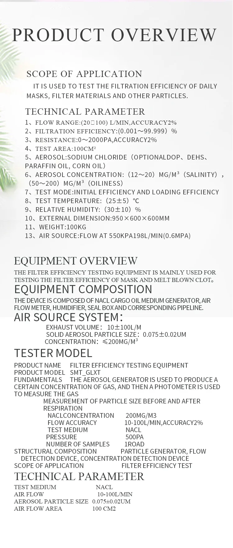The filter efficiency tester is mainly used for the filtration efficiency test of masks and melt spraying cloth. It is used for