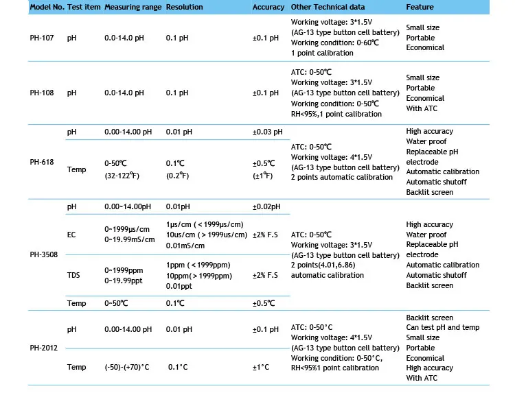 Main products | pH Meter,Refractometer,Water Test Strips,TDS Meter,Conductivity Meter,Salinity Meter,DO Meter,Electrode,COD Reactor,Turbidity Meter,Colorimetric Meter,Water Test Kits,Medical Products,Digital Balance |