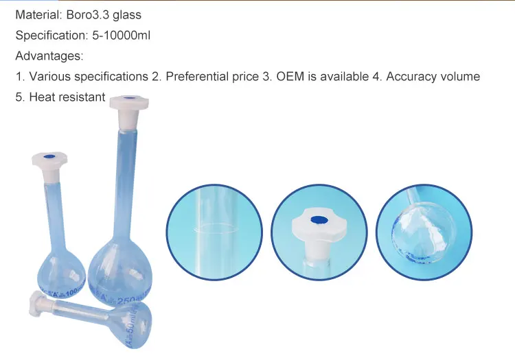 Wholesale Lab Glassware Borosilicate Glass Volumetric Flask Measuring Flask