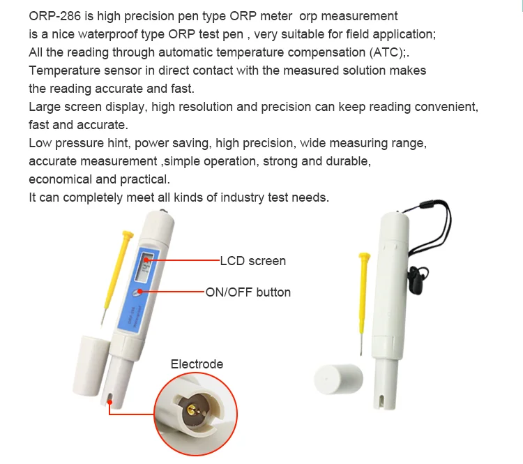 ORP-286 is high precision pen type ORP meter is a nice waterproof type ORP test pen , very suitable for field