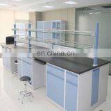 Lab Equipment Wooden Steel Island Bench With PP Sticks and Sink and Reagent Shelf Laboratory Side Bench in Guangzhou