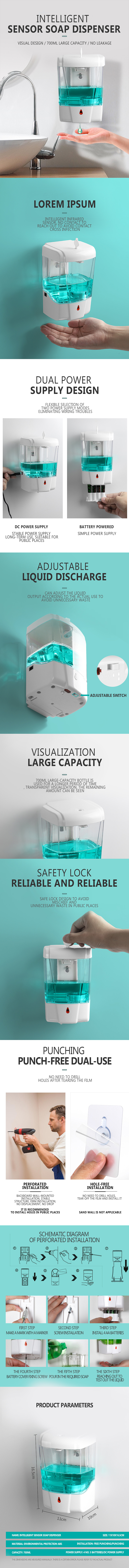 Stock High Quality Wall Mounted Refillable Large Capacity 700ML Automatic Plastic Liquid Soap Dispenser for Bathroom and Kitchen