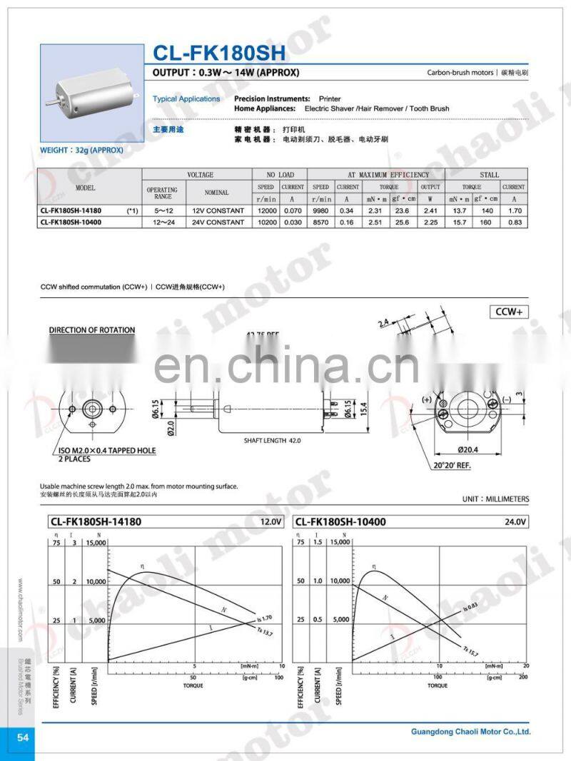 High torque slot car motor CL-FK180WH Neo-magnet optional with double ball bearings and colored housing available.