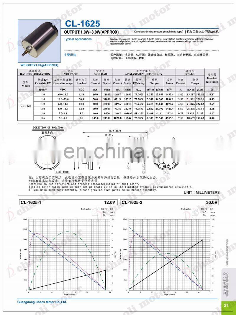 1.Coreless motor CL-1625