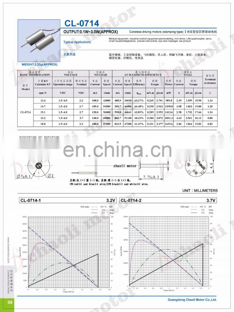 Coreless Driving Motor High Speed CL-0714 for UAV Quadrocopter