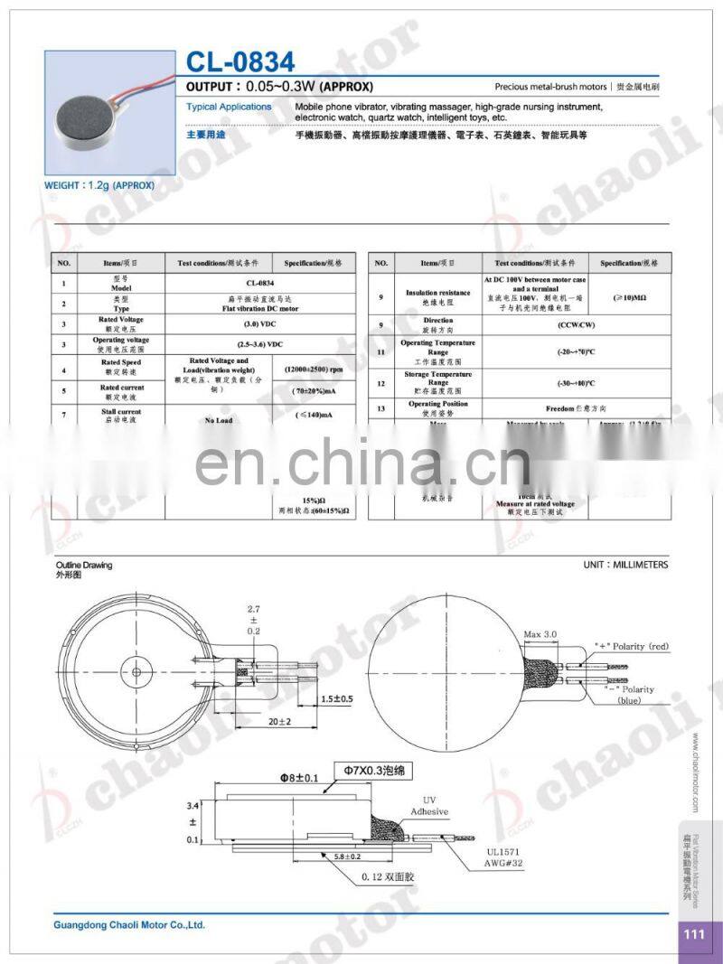 1.CL-0834 Flat Vibration DC Motor