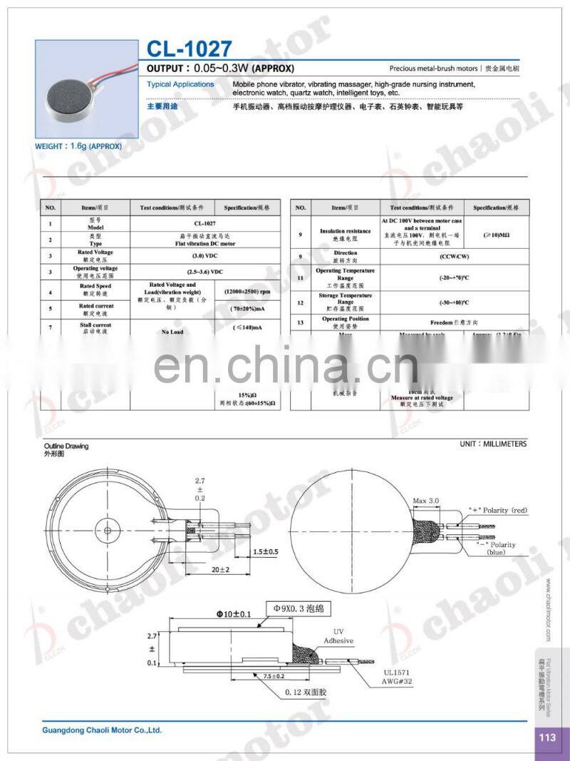 10mm CL-1027 dc Vibrating Motor For Intelligent Toys Quartz Watch
