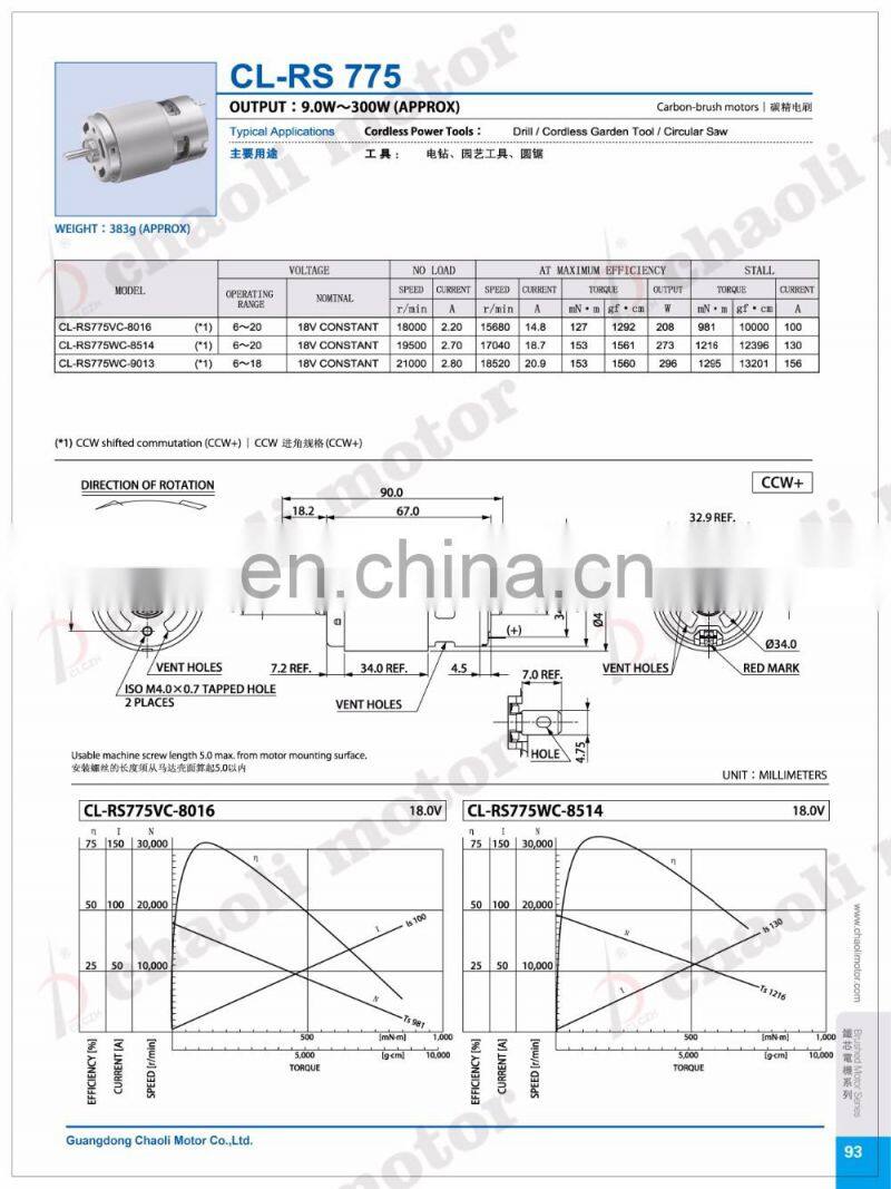 18V 47mm Brushed Motor CL-RS775 High Speed High Torque for Electric Tools