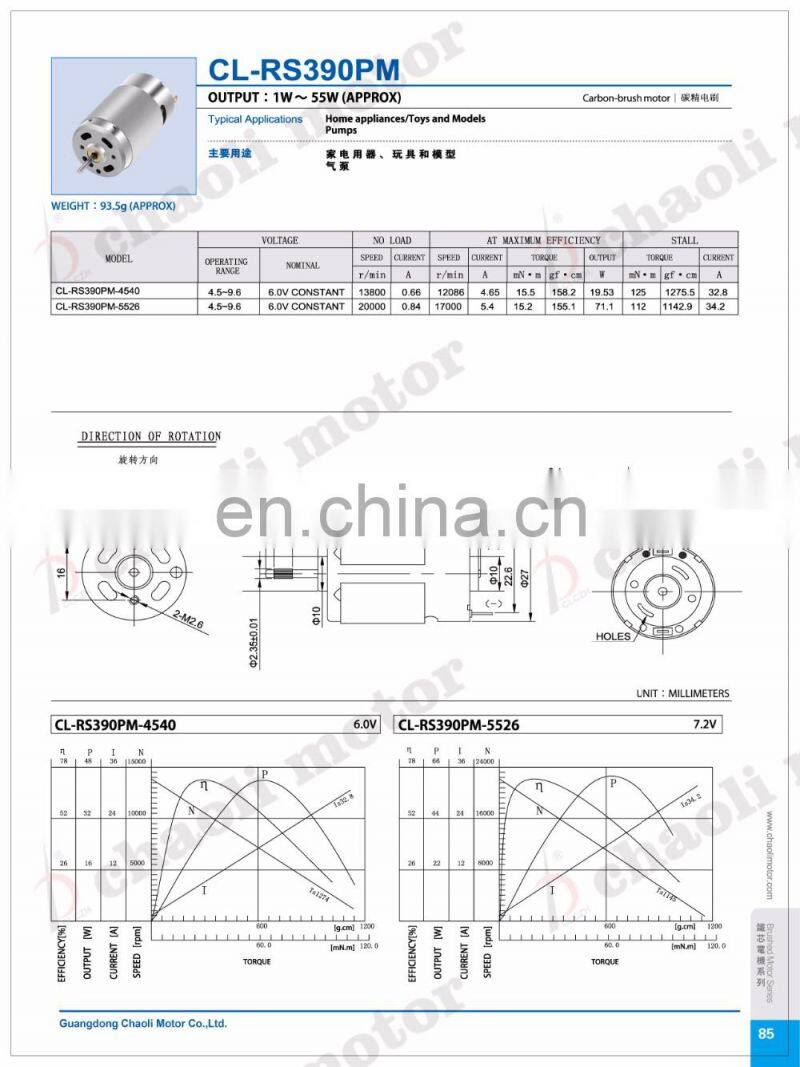 High Speed High Torque dc Motor CL-RS390PM 6V for Home Appliances