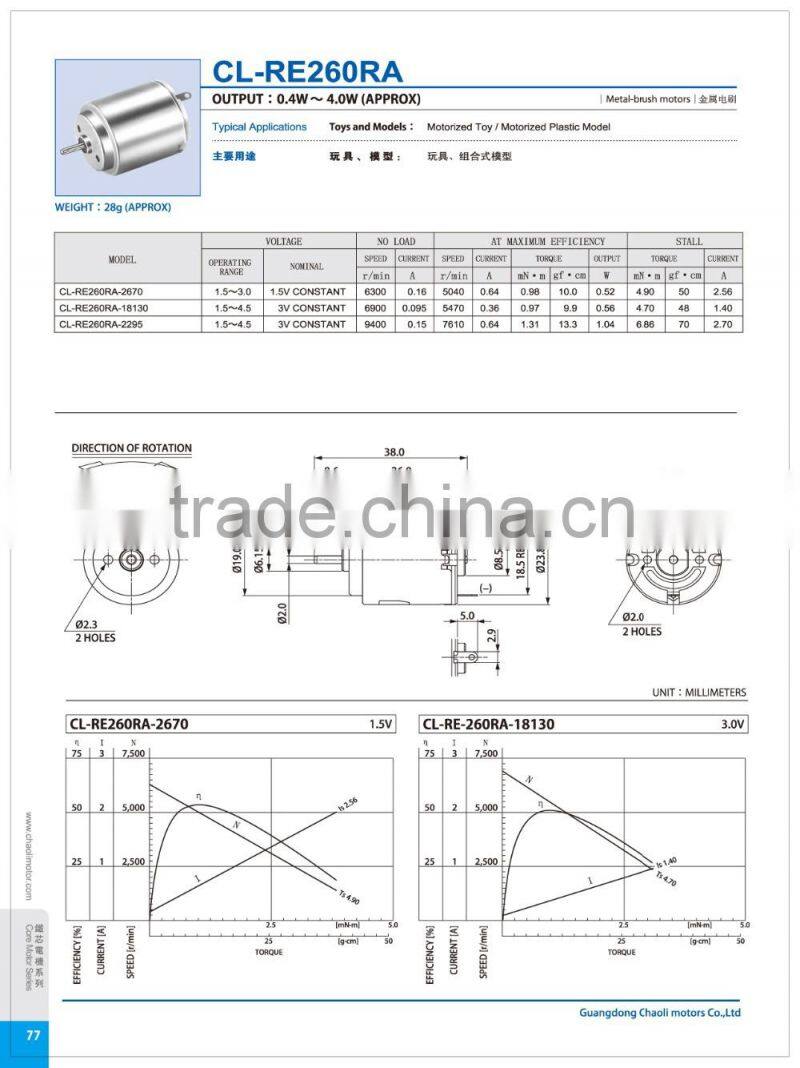 High Quality CL-RE260 Micro DC Motor With Metal-brush for Toy and