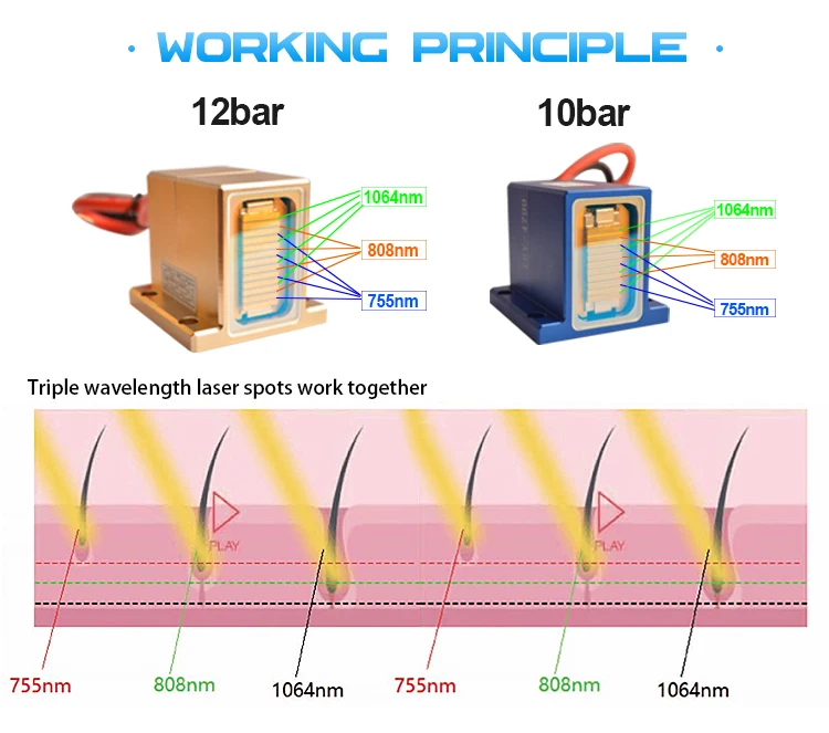Hot Products 3 Wavelength Hot Sale Germany Bars Permanent 808nm Diode Laser / Laser Diode 808 / Alexandrite 755 808 1064nm