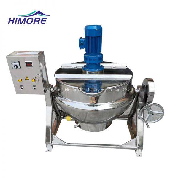 This sandwich cooking pot stirring sandwich pan uses electricity, natural gas and steam as heat sources to cook and heat materials. Double layer pot body, good heat preservation effect,large heating area, high heat efficiency,fast material temperature rising, even heating, easy to control heating temperature,to ensure that the material does not paste the pot.