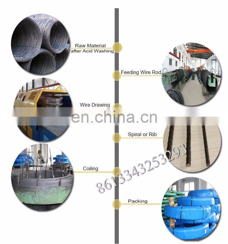 Raw material -Acid washing-----Wire Feeding----Wire drawing---Spiral ribbed PC wire ---PC wire Coiling---Storage--Loading---delivery