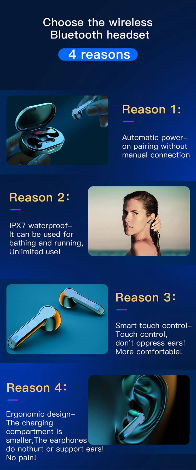 Ipx7 Wireless Bluetooth Earbuds In Ear Headphone Gaming Headset Bt 5.0 Tws Sport Bluetooth Wireless Earphone