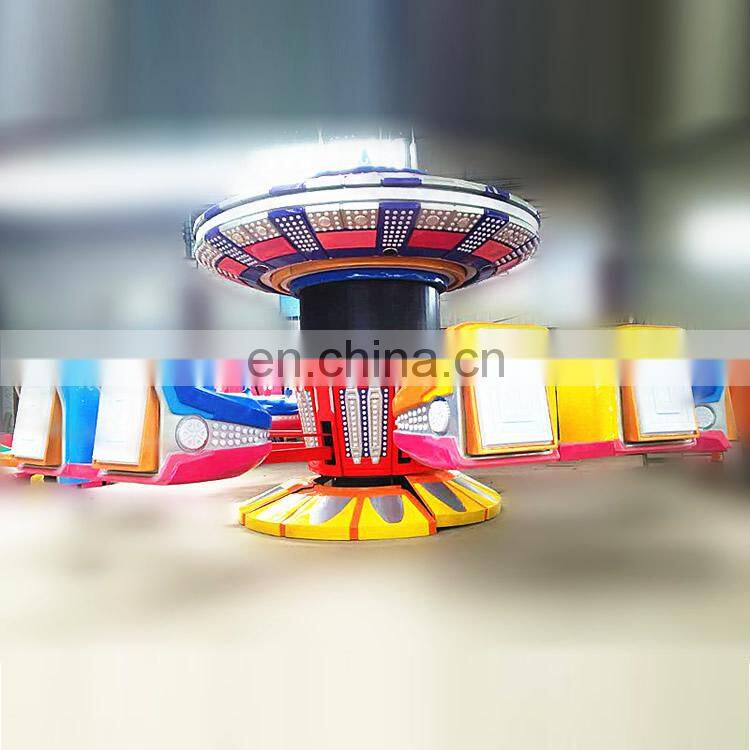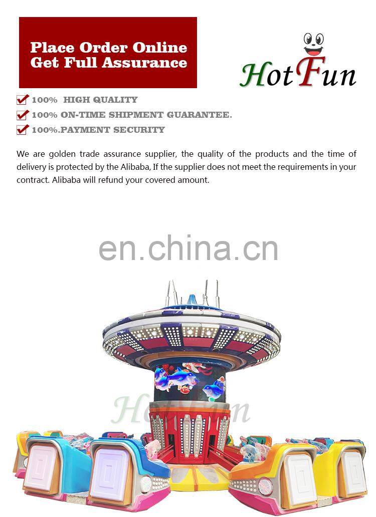 funfair space hunting lost in space rides is one of the most popular rides in 2017, the lost in space rides have beautiful color and light, this is not the most important, the most important thing is the lost in space rides also have guns on the cockpits, prople can control the cockpits up and down by press the buttons in the cockpit, and the same time, use the gun shoot the screen in the mmiddle of the machine, there is a small game, people on the plane shoot the monsters or the planes together, then can go to another level, it makes this rides more funny.