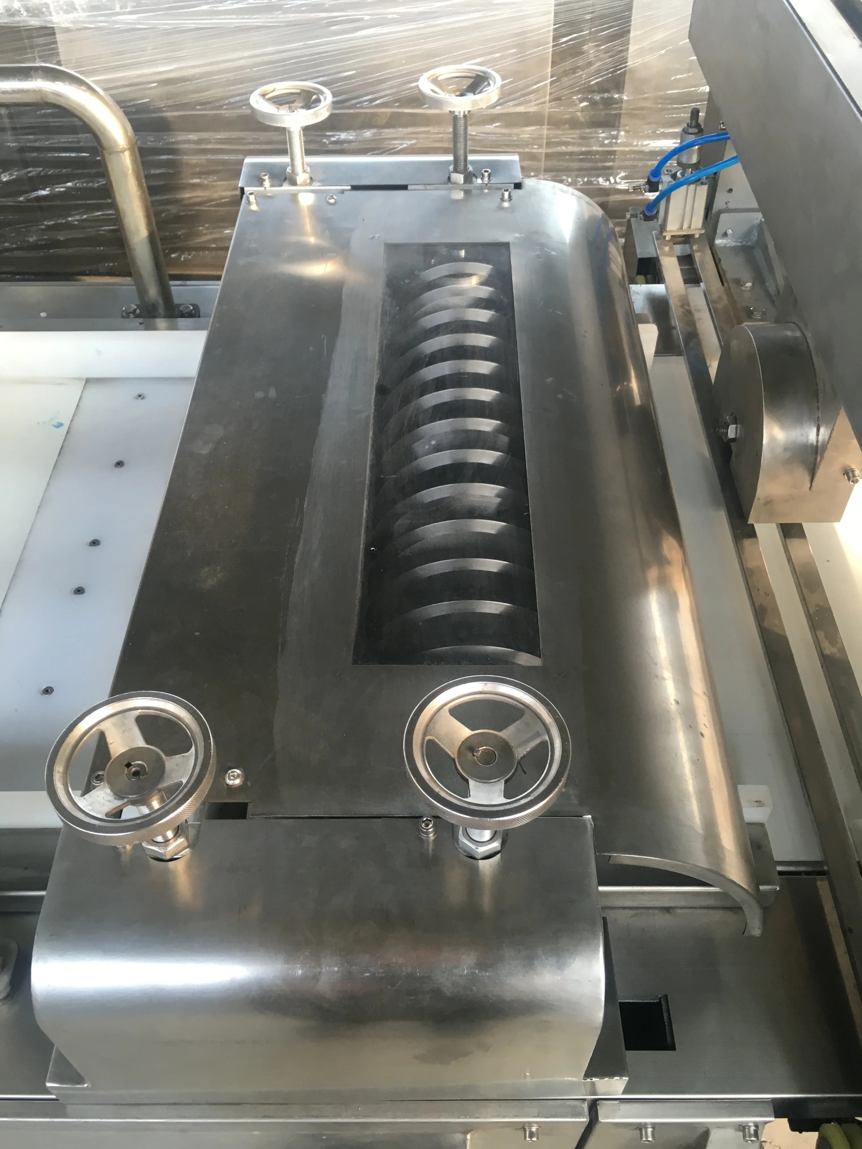 This is one part of Granola Bar cutting machine. The cutter will cut the bar to different size according to customer requries, bigger or smaller size. We use the protect cover to agaist the staff hurt.