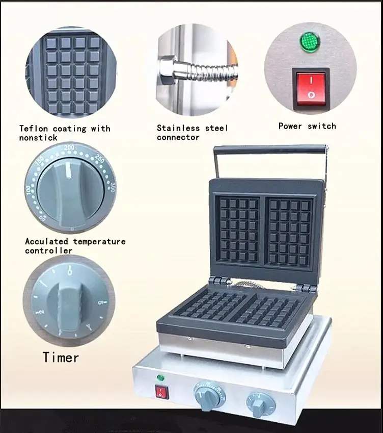 Commercial Multifunctional Waffle Maker 220V Single Plate Square Waffle Maker Industrial