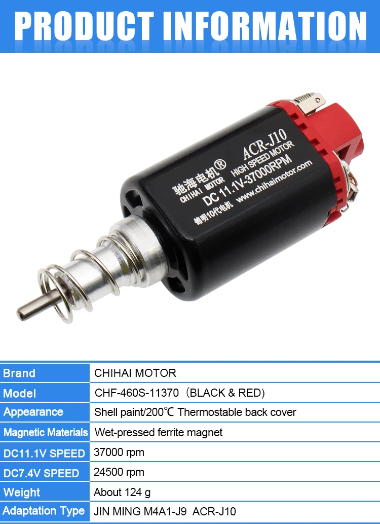 Product Type: | CHIHAI MOTOR CHF-460S-11370 long shaft 460 Long Axis Motor 11.v- Without Motor Gear for JM Gen.10 ACR/JM Gen.9 Water Gel Beads Blaster Modification Upgrade | ||||||