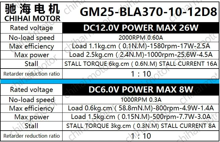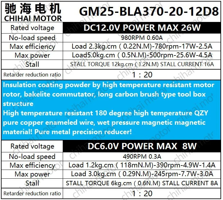 ChiHai Motor GM25-BLA370 25mm DC 12V 24V Ratio1:20 dc Gear Motor DIY for Intelligent Electric Control Toy Car, DIY Robot Motor