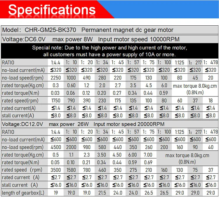 Product Type: | CHR-GM25-370K dc gear motor | ||||||