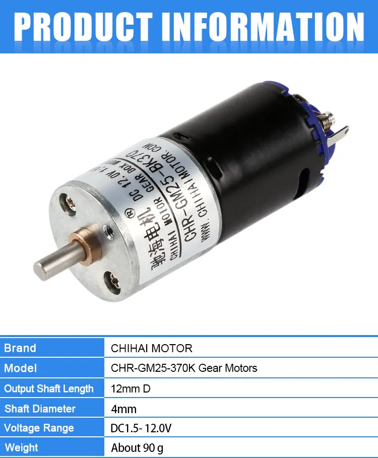 Chihai Motor 25-370K Low Noise DC6V 12V 24V Wall Climbing Car Motor WPL B-14 for Remote Control Car ,DIY Smart Robot