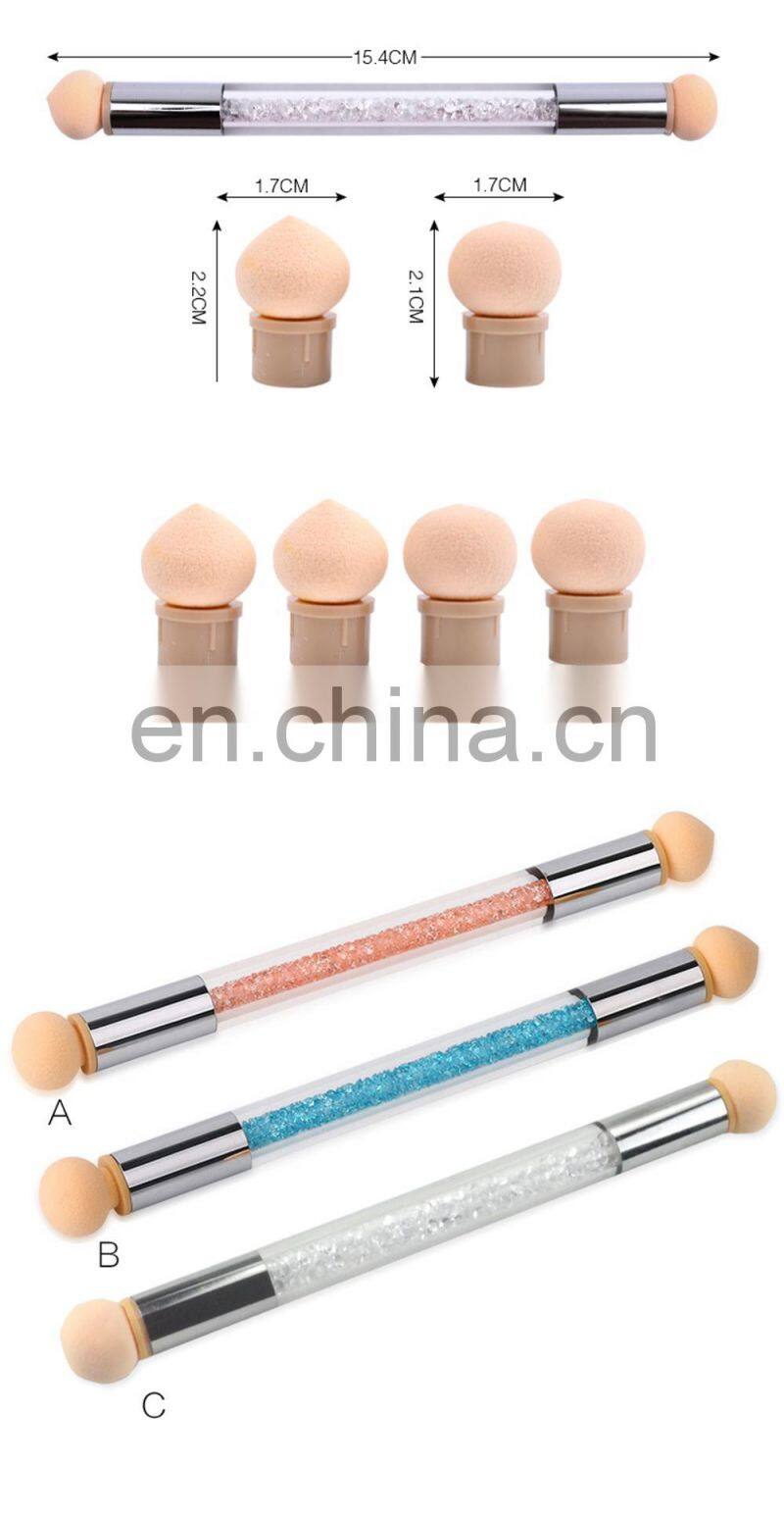 - High Quality Dual Ended Nail Art Sponge Brushes With Rhinestones Handle Nail Art Tool