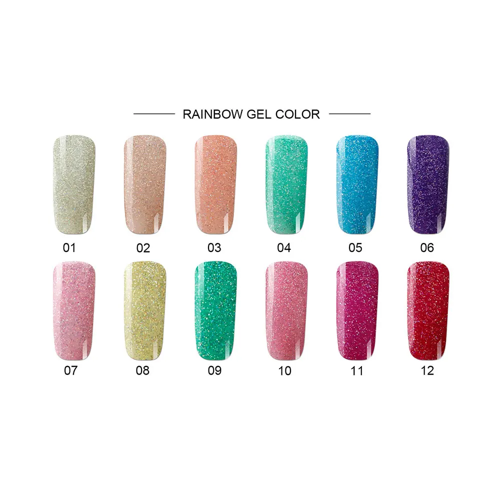 RONIKI High Quality Glitter Gel Polish Soak Off Rainbow Color Nail Uv Gel Polish