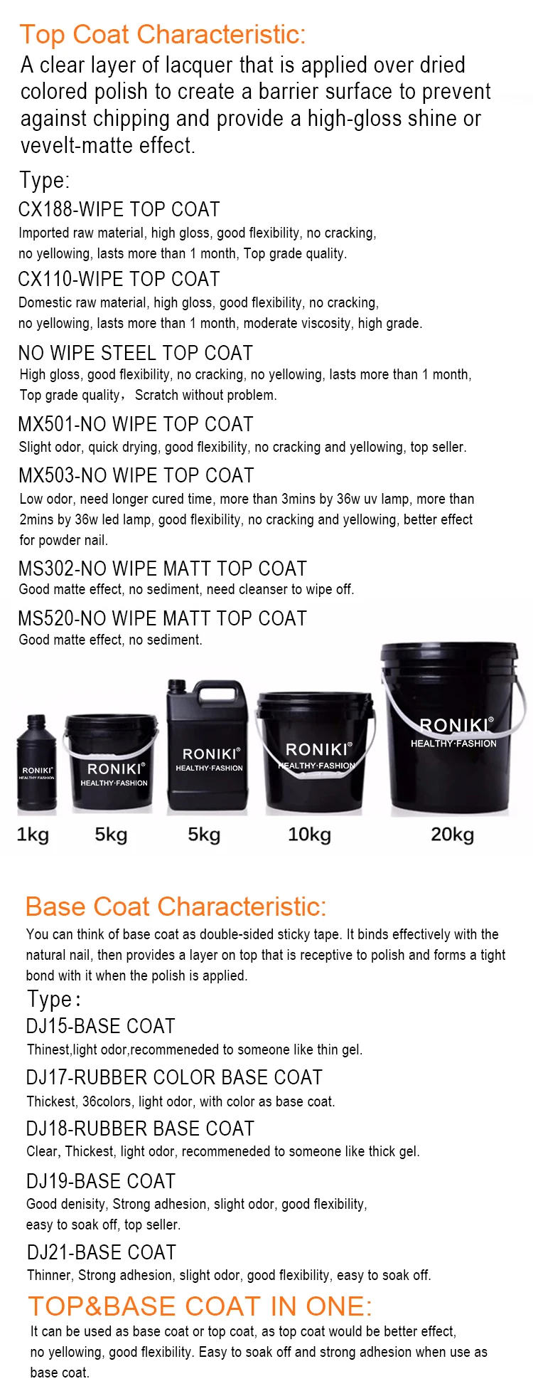 RONIKI New Production Fashion Pearl Color Nail Gel Polish Top Coat Base Gel Colour Gel