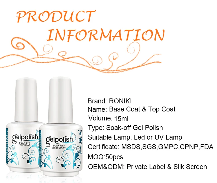 RONIKI Professional High Quality Soak off uv Color Private Laber Nail Gel Polish