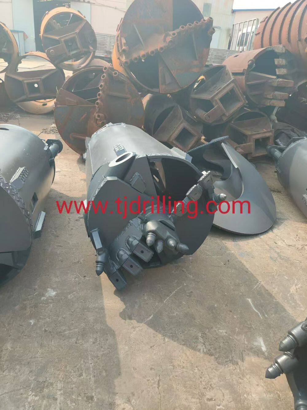 Conical clay bucket used for drilling in clay and sticky clay with high plasticity.