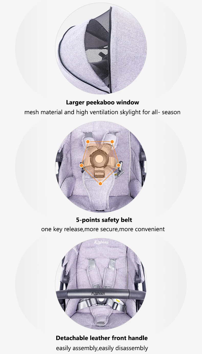 3 In 1 Luxury Infant Basket Car Seat Foldable Prams Baby Stroller