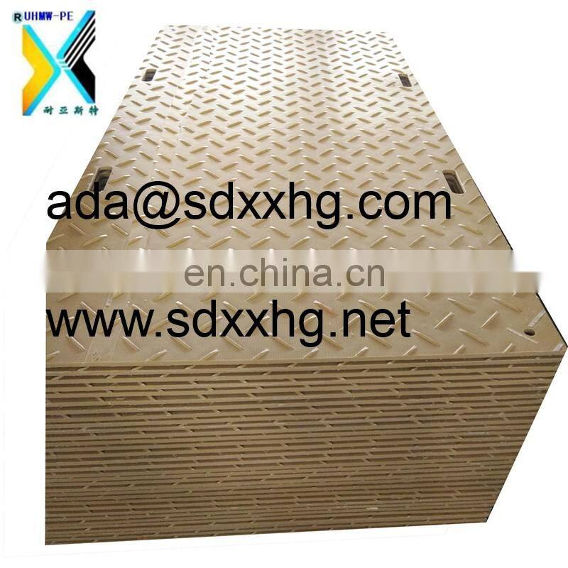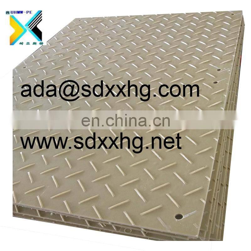 high abrasion portable road mat loading capacity composite pe plastic excavator panel floor protection plate portable sidewalk are perfectly designed to create temporary roadways or a large surface area – ideal for use on construction sites or at events.high abrasion portable road mat loading capacity composite pe plastic excavator panel floor protection plate portable sidewalk are made from HDPE composite material.high abrasion portable road mat loading capacity composite pe plastic excavator panel floor protection plate portable sidewalk are an ideal solution to the expensive problem of repairing ground surfaces or repeatedly replacing expensive plywood sheets.high abrasion portable road mat loading capacity composite pe plastic excavator panel floor protection plate portable sidewalk can be used to build temporay roadways, walkways, work platforms or parking areas.
