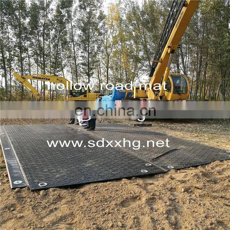 MegaDeck creates a stable platform or portable roadway anywhere in the world regardless of climate or terrain hdpe hollow ground mat are manufactured in Xinxing China using a proprietary blend of High Density Polyethylene (HDPE) and special impact modifiers to accommodate thermal expansion, UV resistance, anti-static properties, and tremendous strength. A unique process ensures all plastic is completely melted then molded, preventing micro-fissures and inconsistencies. A hollow ribbed interior provides superior performance over soft ground with a low Bearing Ratio .