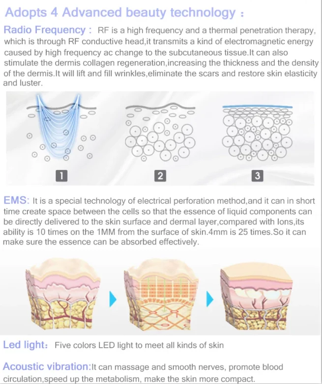 5in1 rf Ems LED Photon Face Skin Rejuvenation Electroporation Mesotherapy Facial Machine Device Instrument