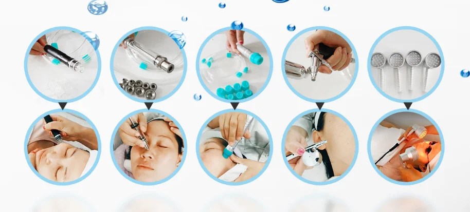 4 in 1 functions | water dermabrasion with 8 tips Diamond dermabrasion Peeling with 9 tips Photon light with 4 handles Oxygen Spray gun 1 piece |