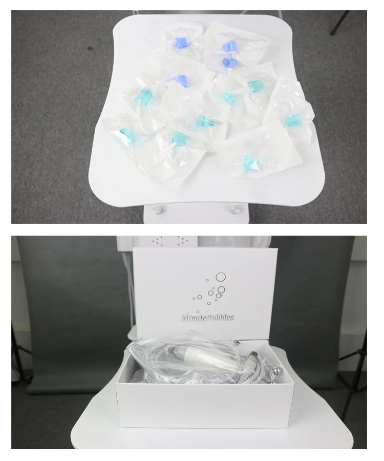 | Handpieces | •Aque peel bubble cleaner probe •BIO skin lifting probe •RF probe with blue light |