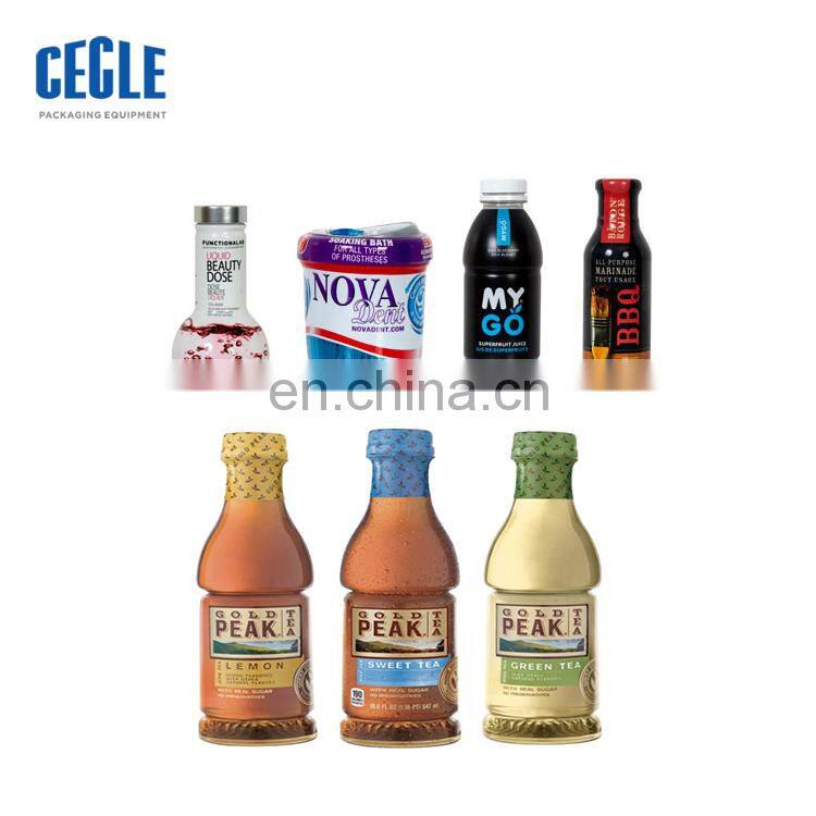 Mainly used for all kinds of container bottles, container cans, shrink film packaging of various shapes and materials. For example: food and beverage, cleaning supplies, medicine, makeup and other plastic bottles, glass bottles, PVC, PET, PS, iron cans and other containers